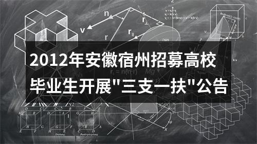 声明:专注 2012年安徽宿州招募高校毕业生开展"三支一扶"公告 相关岗位分析;专业指导面试技巧;保障就业成功概率。